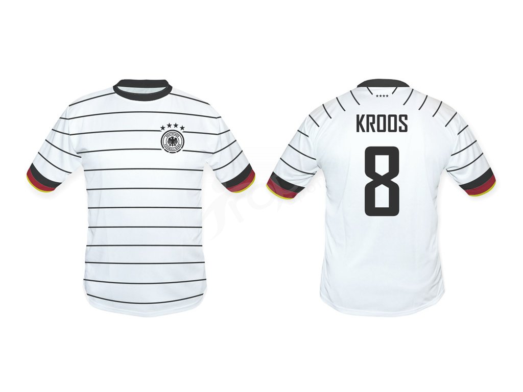 Bylo vaším přáním mít fotbalový dres Německo? Toto přání si můžete splnit. Fotbalový dres v barvách státu. Nezbytný doplněk každého fanouška. Při výrobě je použita sublimační technologie. Tato technologie zaručuje stálobarevnost po celou dobu životnosti fotbalového dresu.