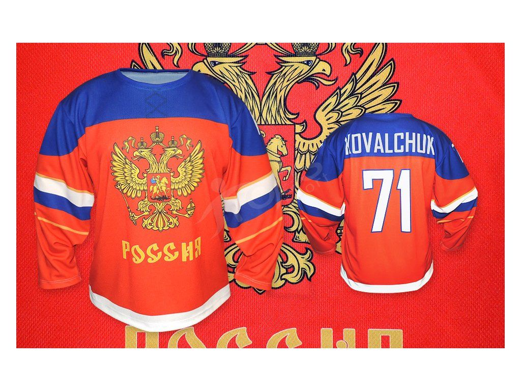 Bylo vaším přáním mít hokejový dres Rusko? Toto přání si můžete splnit. Hokejový dres v barvách státu. Nezbytný doplněk každého fanouška. Při výrobě je použita sublimační technologie. Tato technologie zaručuje stálobarevnost po celou dobu životnosti hokejového dresu.